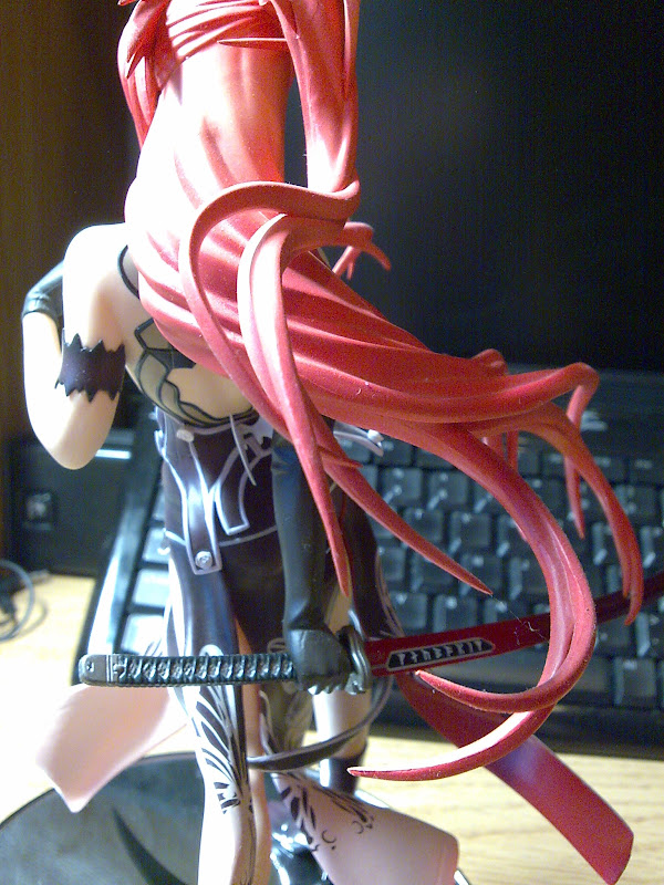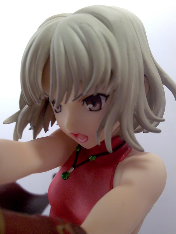 The red top, like the rest of the figurine is plain, but the folds are done very convincing, even though Canaan’s breast size is smaller than typical characters. Slightly darker red hues are used across the folds. Her necklace hangs in mid-air, as it should from such a position.