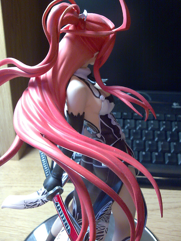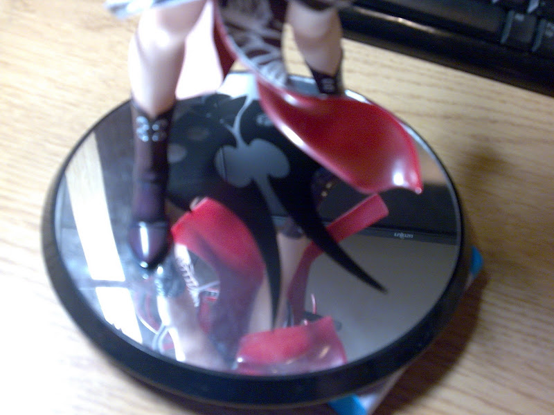 When comparing the game art and the figurine, they are a near perfect match. If the art were to be transcribed to a 3D form, this would be it. The eyes are clear in their shades of purple, the facial structure is perfect from all angles. This is praise-worthy as it is extremely difficult to find a figurine that has a 360 consistency regarding the face. Its quite an alluring expression she had as well; lips slightly pursed in a small smile and matches the whole body language of the figurine itself.