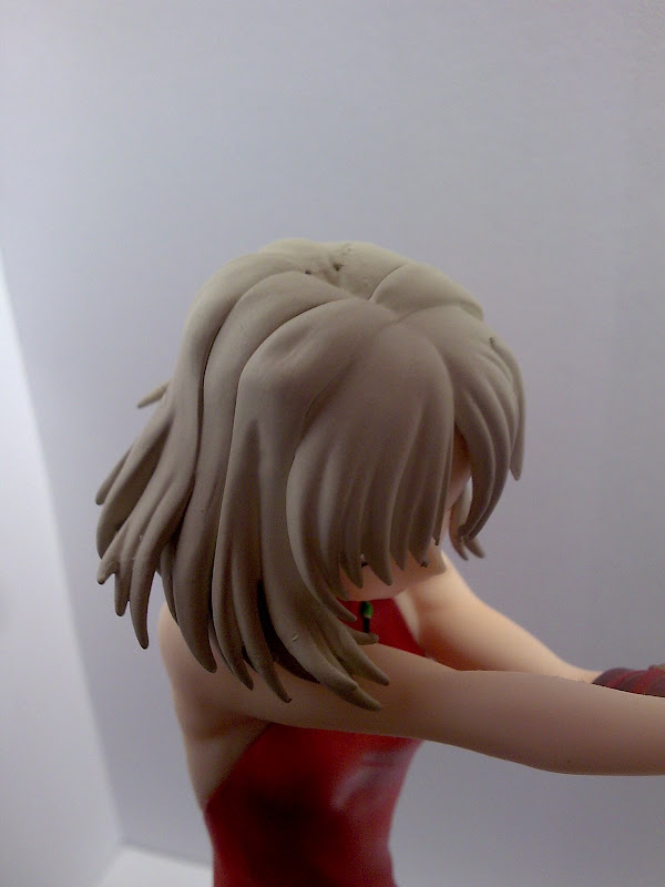 The hair itself is deceiving in the photos. I have no idea what goes on in their factories; do small dogs chew the plastic moulds or their files are made from luxury silks? Why is it smooth there and mine bumpy across almost all strands? I know GSC can make great short hair, my Ryougi Shiki figurine proves it. A little bit more quality control please.