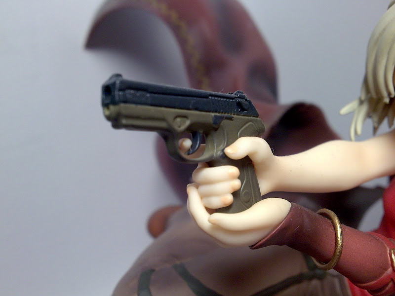 Canaan’s weapon of choice, a modded Beretta Px4 Type G is replicated with detail, to the modified lower grip. However, the hands holding it could have done with a little more care. I admire that her fingernails are a different colour. Attention to small details such as these are nice.